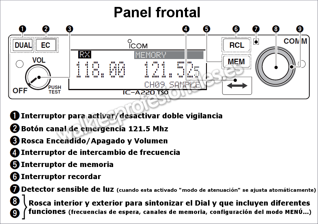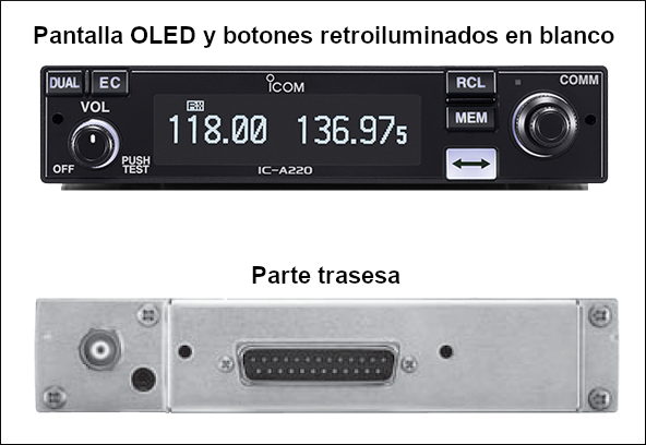 Principales características de la Emisora ICOM DE BANDA AÉREA IC-A220 TSO: