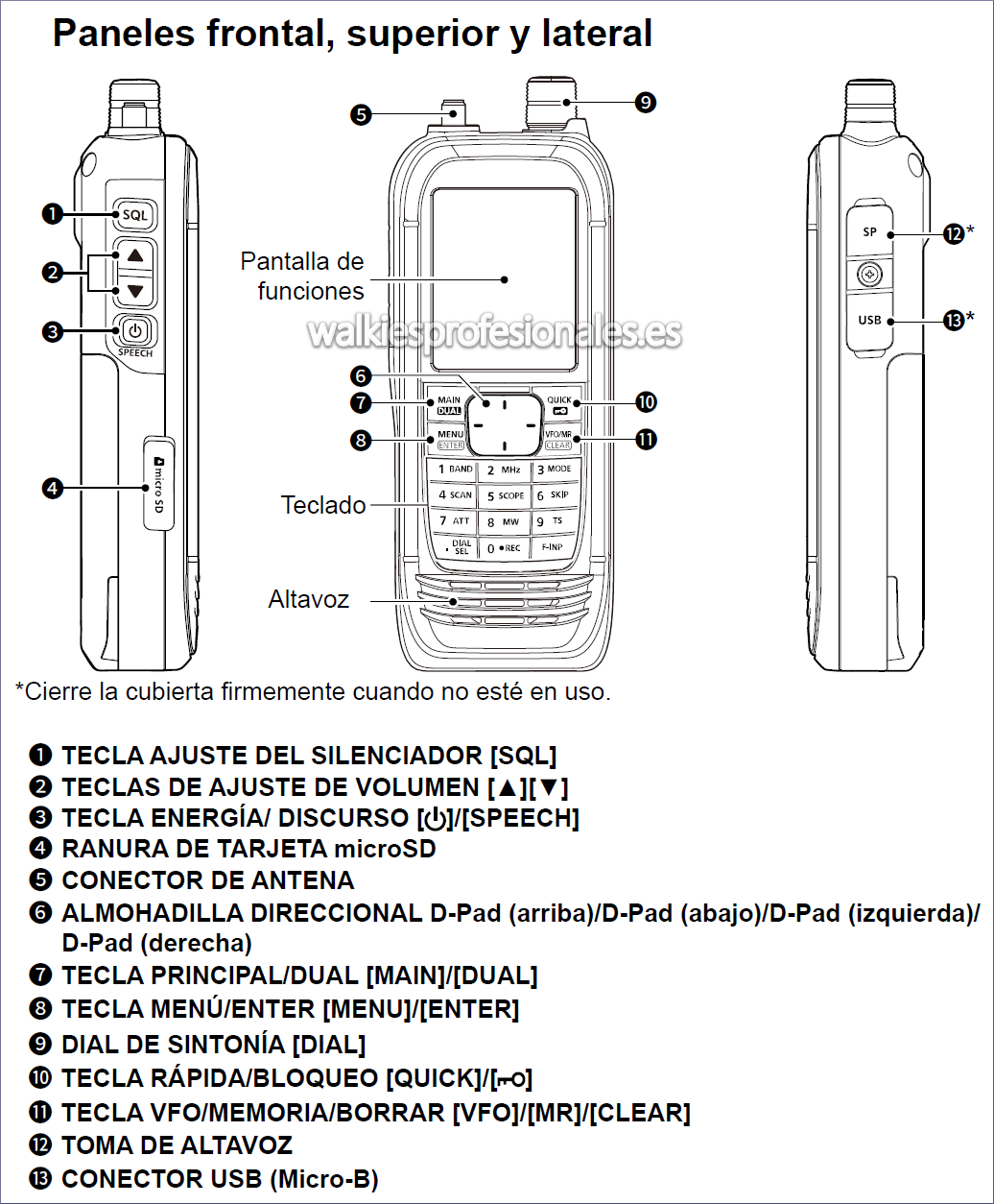 - Peso aproximado con antena y batería: 310 gr