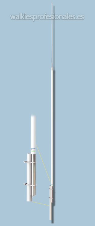 • Colineal de 5/8 ondas en fase con dos estrangulaciones coaxiales para suprimir la radiación del cable