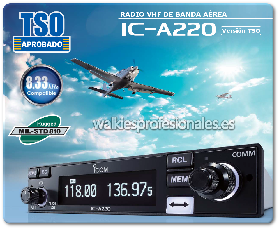 CATÁLOGO ICOM EMISORA DE BANDA AÉREA IC-A220 TSO