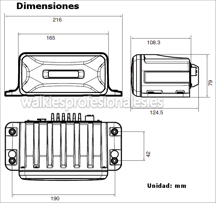 - Dimensiones (AnxAlxPr): 216 x 79 x 125 mm