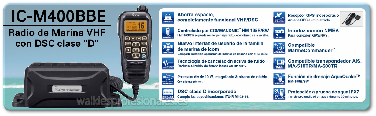 Principales características de la Emisora ICOM DE MARINA IC-M400BBE: