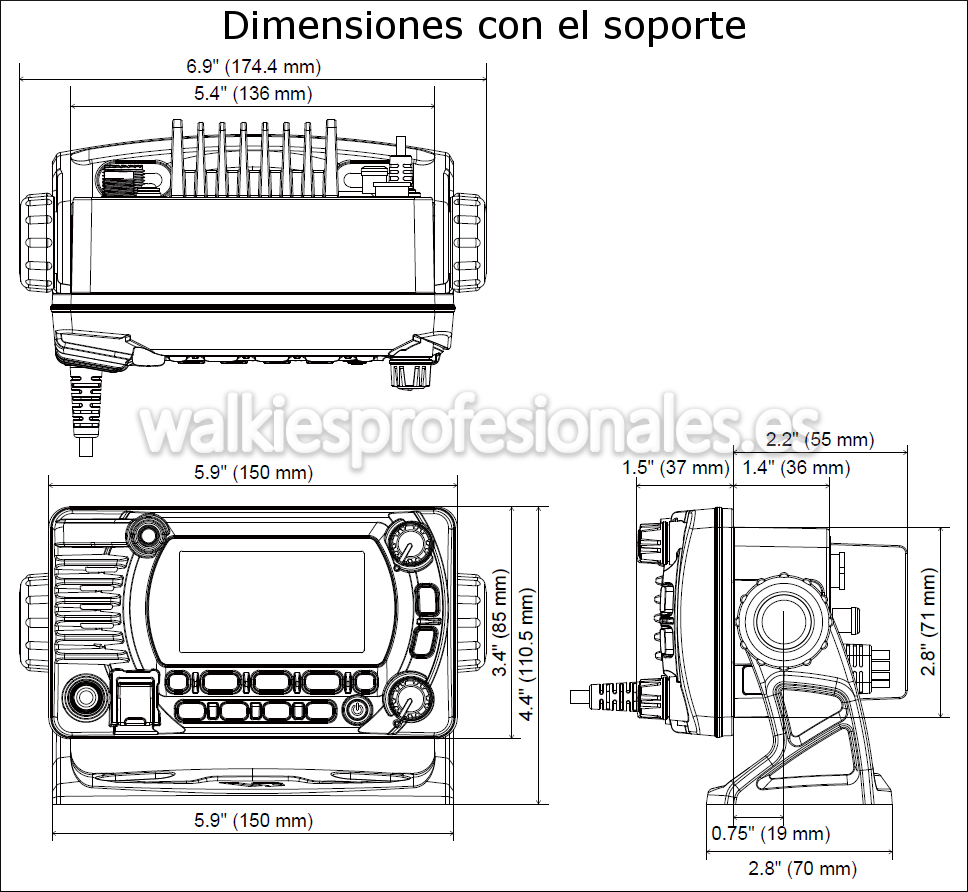 Tiene una carcasa trasera ultra delgada y compacta, con solo 82 mm de profundidad o la mitad de la profundidad de radios VHF comparables en el mercado. Esta carcasa también brinda flexibilidad cuando se monta al ras la radio en áreas estrechas o cuando se monta el soporte en la radio al ocupar menos espacio en el tablero y permitir más opciones de montaje.