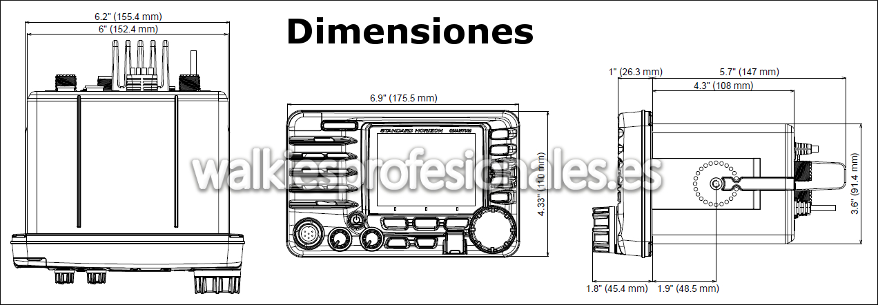Principales características de la Emisora STANDARD HORIZON DE MARINA GX6000E: