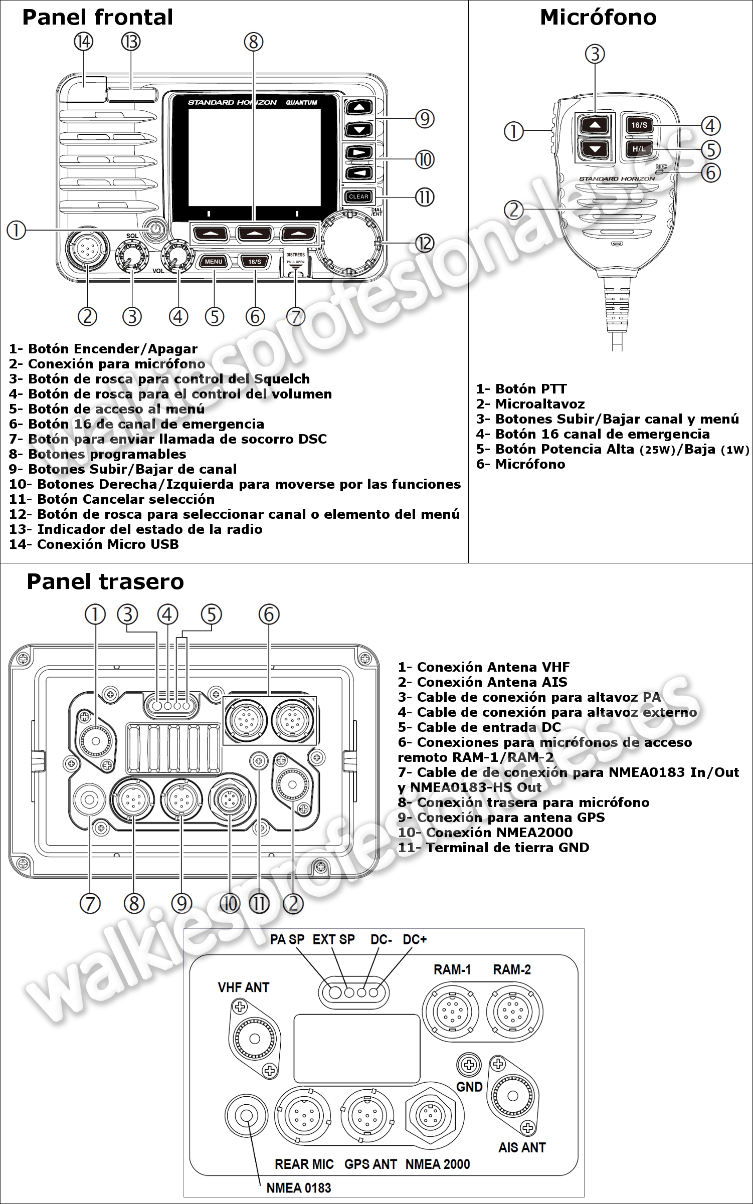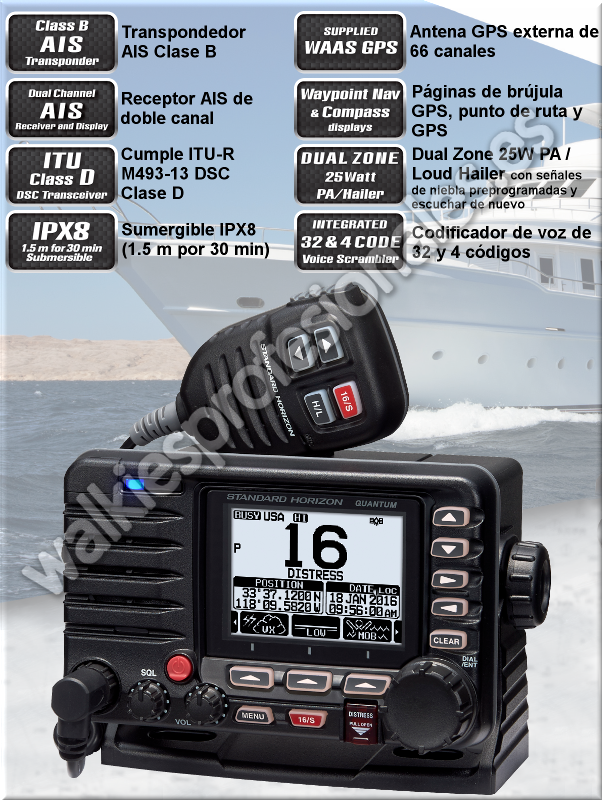 Principales características de la Emisora STANDARD HORIZON DE MARINA GX6500E: