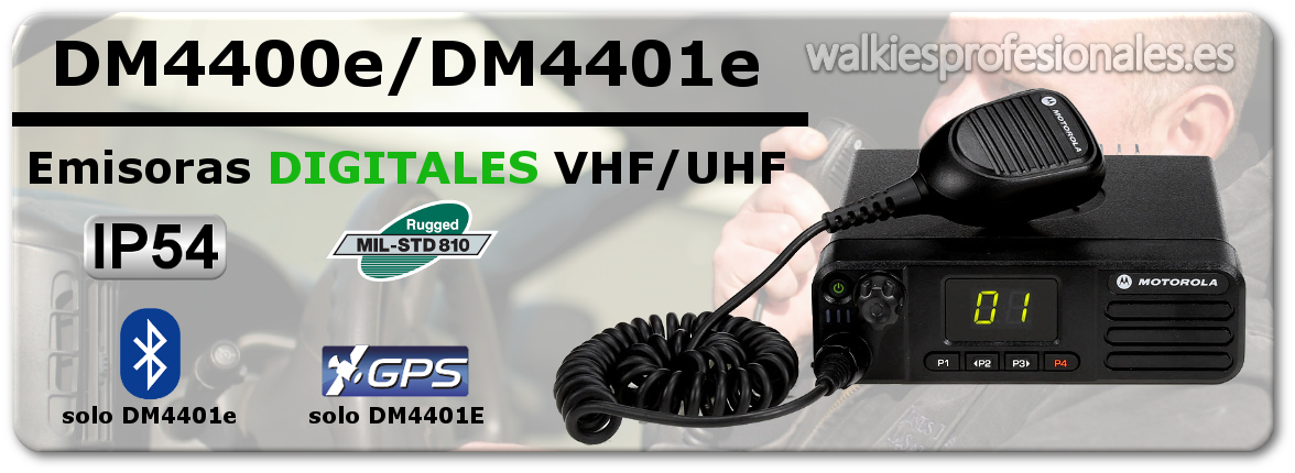 • DM4401LPUE: Emisora digital de 1-25 W, con GPS y Bluetooth