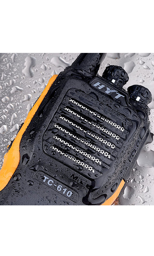 El walkie TC-610 tiene un diseño ergonómico de fácil agarre que previene de las caídas accidentales. Este equipo está preparado para operar en condiciones duras, ruidosas y polvorientas ya que cumple con el grado de protección IP66 y a las normas MIL STD810. Además, también tiene una potencia de salida estable y una calidad de audio clara y nítida perfecta para trabajar en entornos ruidosos. Así su productividad y comunicaciones no se verán obstaculizadas por el ruido o la suciedad y por ello es especialmente interesante para la construcción u otros trabajos que se realizan al aire libre.