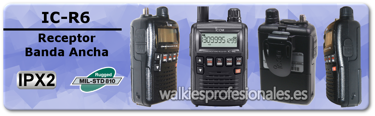 El Receptor ICOM IC-R6 de banda ancha destaca por su rastreo de canales de alta velocidad que es de 100 canales por segundo. Además dispone de unas características que lo hacen in-susceptible a las interferencias: estaciones de aficionado, AM, FM, onda corta, emisoras de radiodifusión, audio TV* y una gran variedad de emisiones pueden ser captadas para escuchar. (*El margen de frecuencia depende de las versiones. TV analógica solo audio. No puede decodificar TDT).