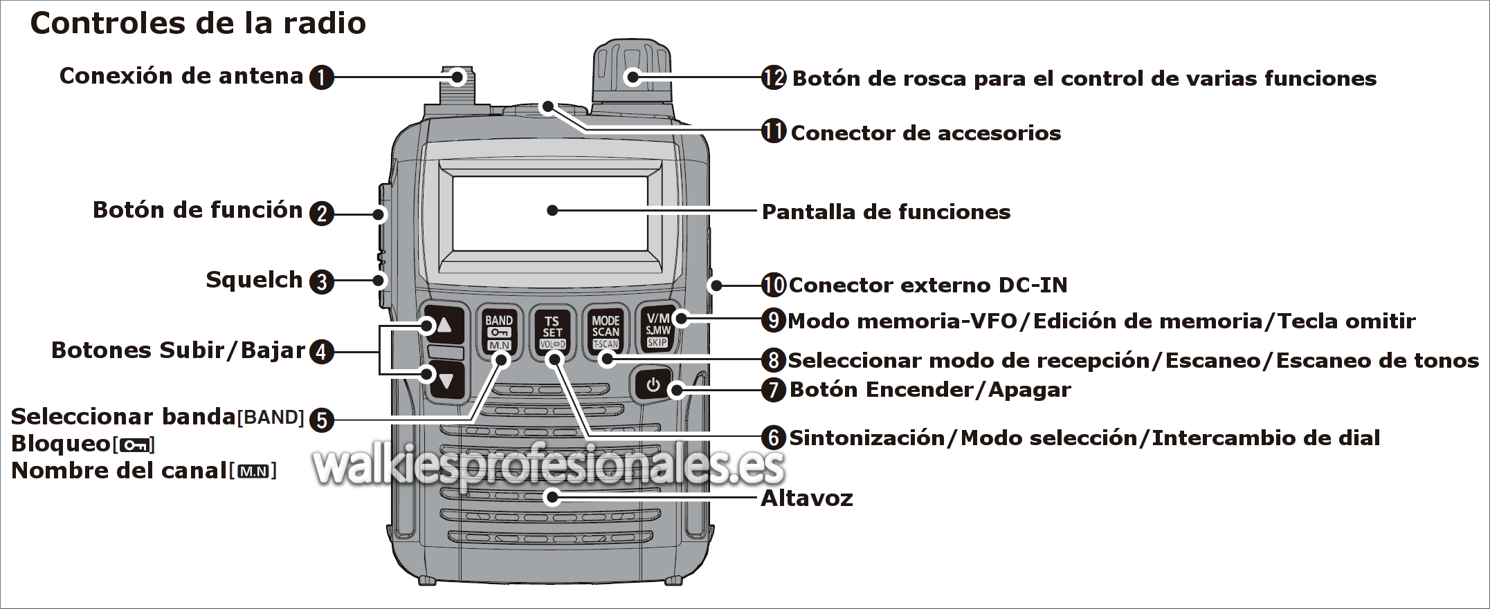 - Puede captar estaciones de aficionados, AM, FM, onda corta, emisoras de radiodifusión audio TV (el audio de la TV analógica) (no puede decodificar TDT).