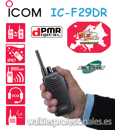 WALKIE ICOM IC-F29DR DIGITAL CON 16 canales digitales dPMR4466 y 8 analógicos PMR446