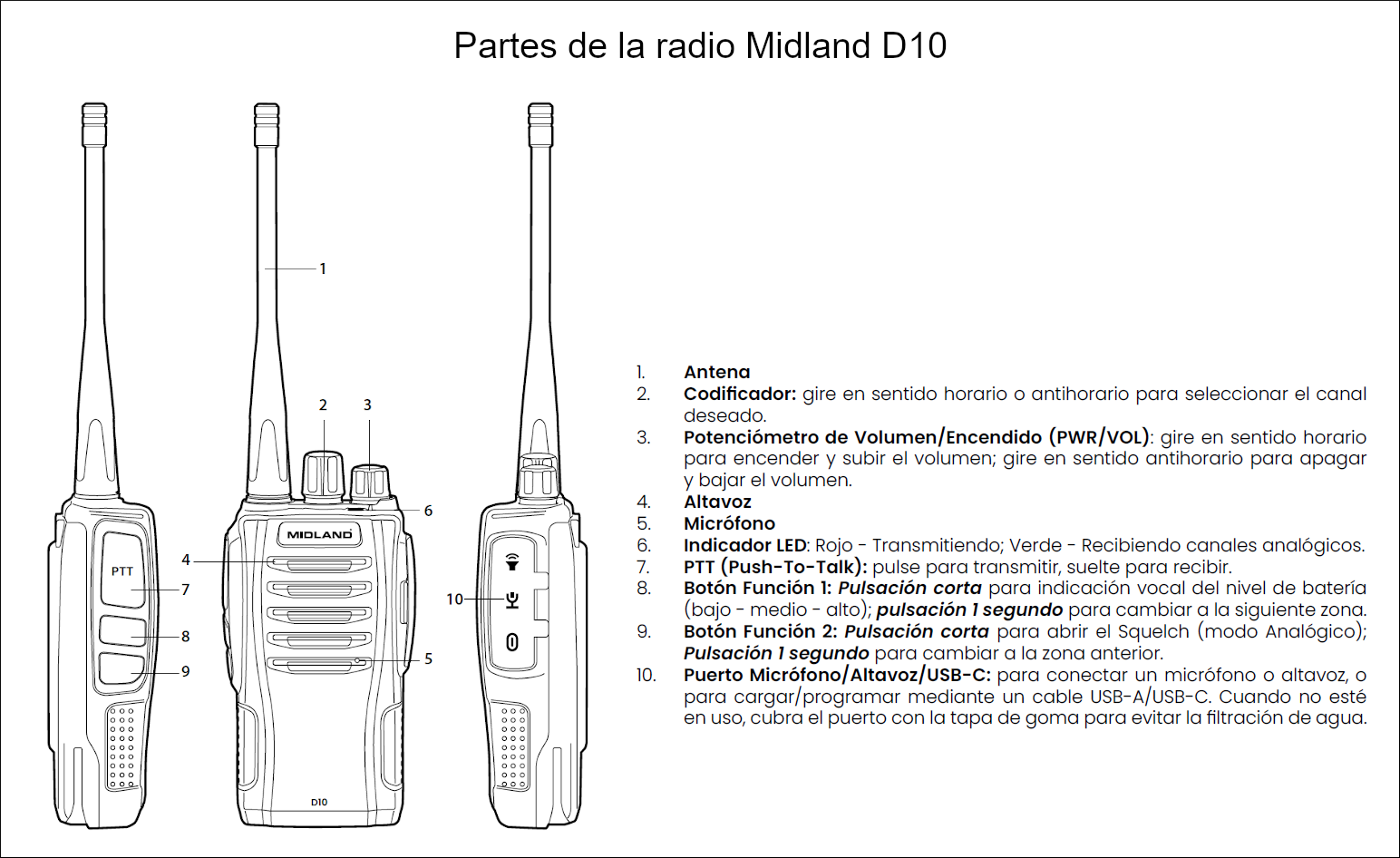 Características del Walkie Midland D10 de uso libre Digital DMR446: