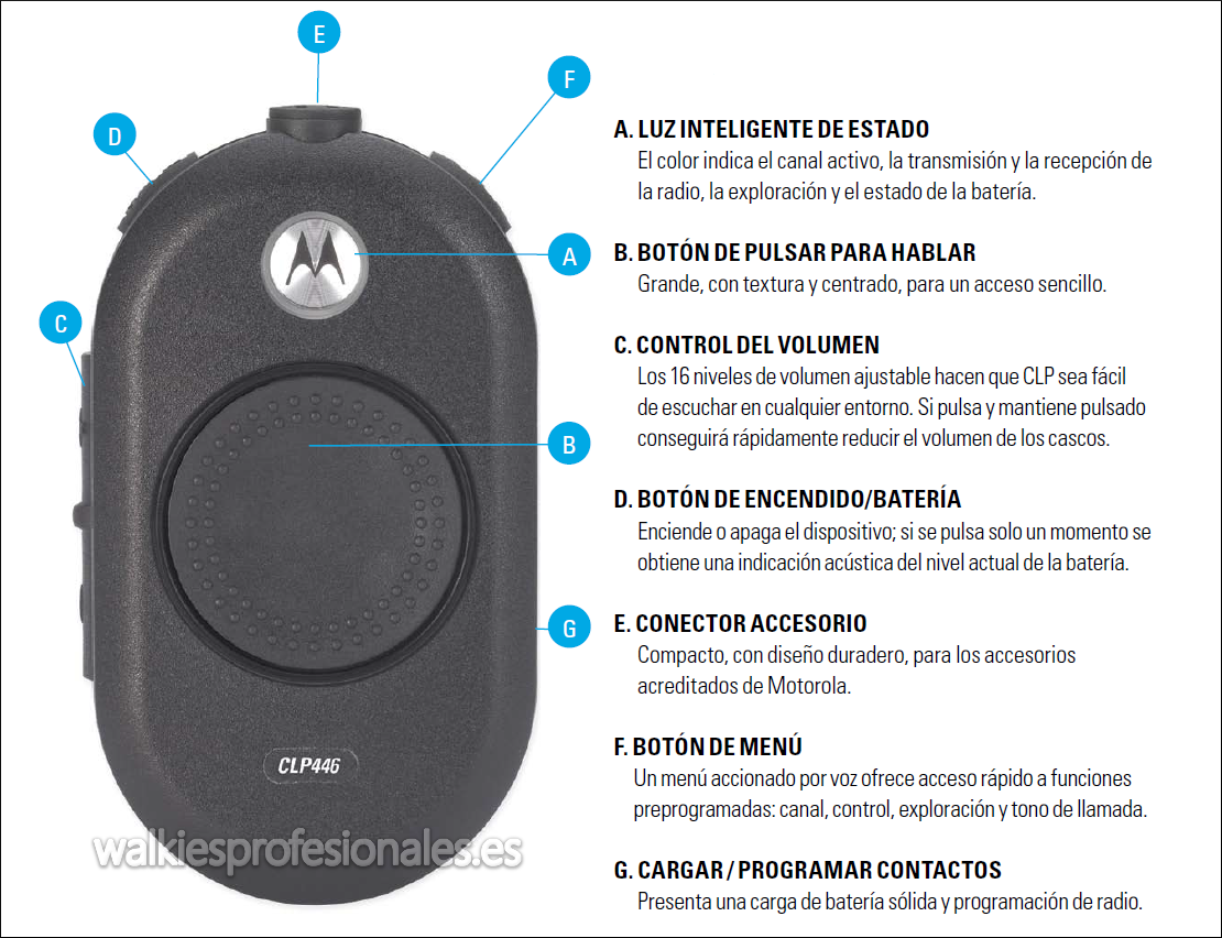 ESPECIFICACIONES TÉCNICAS DEL WALKIE CLP446 DE MOTOROLA