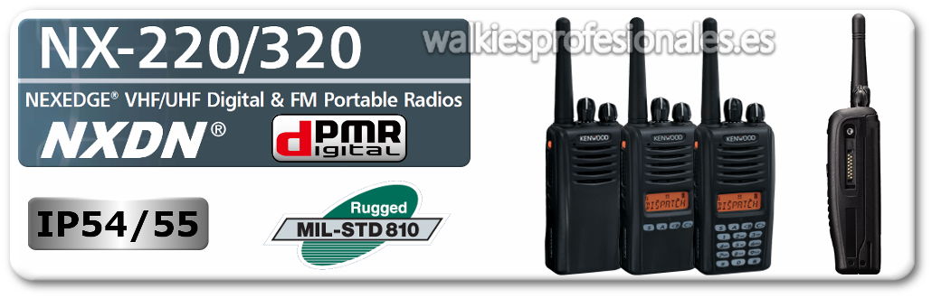 Los walkies digitales Kenwood NX-220 / NX-320 pertenecen a los productos Kenwood NEXEDGE que utilizan avanzados gestores con tecnología DSP para la digitalización de la voz y son compatibles tanto con flotas analógicas en FM, como en las nuevas digitales. Dentro de estos modelos digitales tenemos la opción de elegir entre los sistemas NXDN o dPMR.